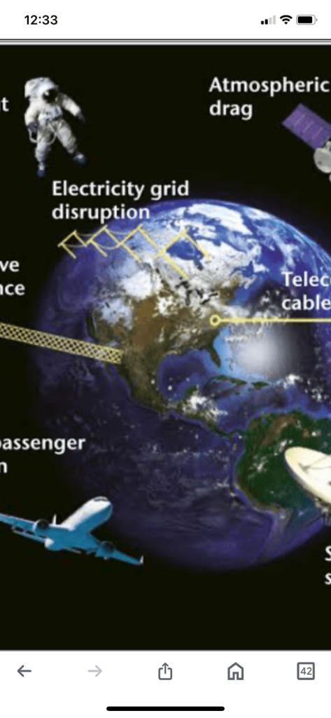 - Power grids Space weather can cause extreme currents in the electric grid, leading to widespread blackouts