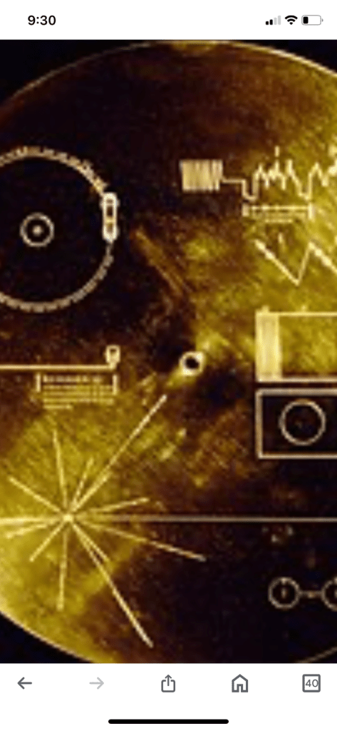The record also has a hand-carved inscription that reads, “To the makers of music — all worlds, all times“. This is the only example of human handwriting on each Voyager mission.