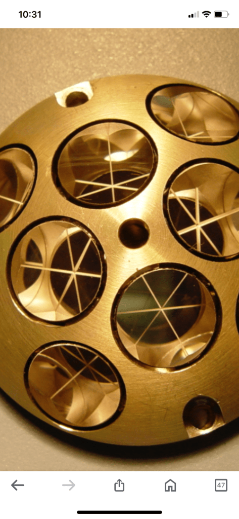 Laser retroreflector arrays make it possible to do laser ranging – using small bursts of laser light to detect distances between objects. Pulses of laser light from a ground station are directed toward an orbiting satellite, which then reflect off the array and return to the station