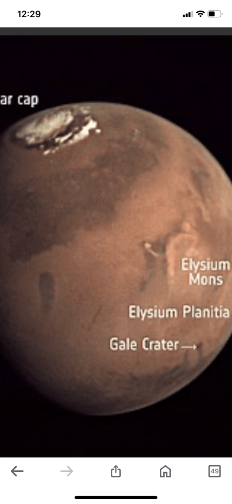 The Elysium Planitia is a broad plain that straddles the equator of Mars. It’s the youngest volcanic terrain on the planet, and some of the volcanic activity has been identified as recently as 1 million years ago.