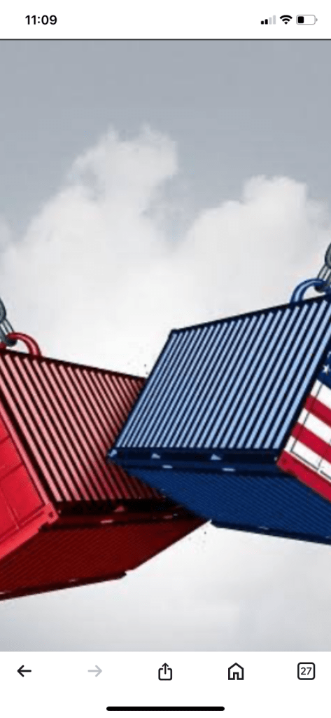 • Currently there are very large tarrifs being placed on Chinese goods entering the United states, and reciprocal tarrifs being placed on US goods entering China.