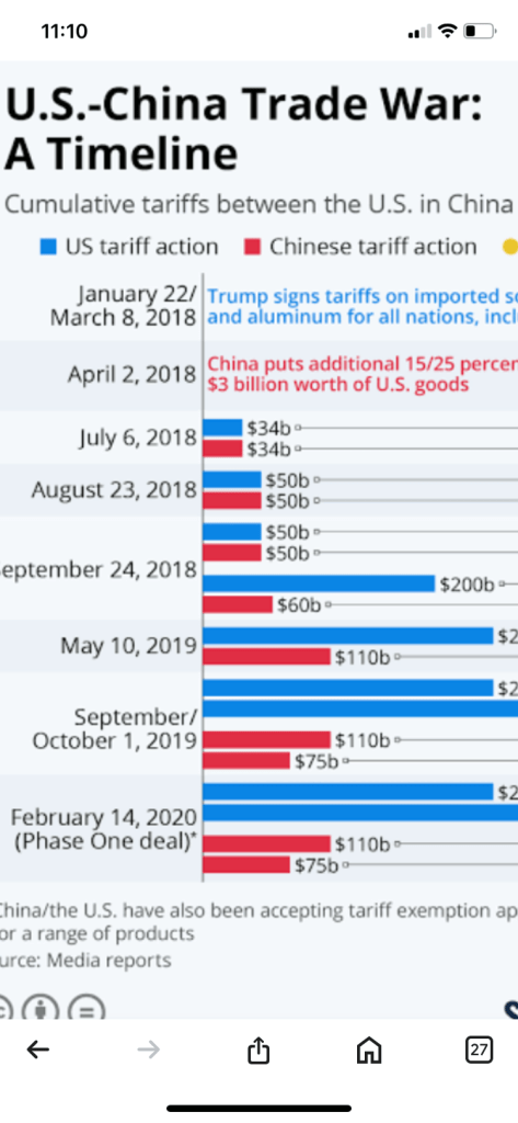 2. While China has not been playing the trade game fairly, tariffs were also enacted on countries who are. For example, the tariffs between the EU and the US were roughly the same and relatively low (EU’s tariffs on US for non-agricultural goods was 1.6%). Despite that Trump falsely claimed that the EU’s tariffs were 39% and enacted high tariffs on EU (for a while).