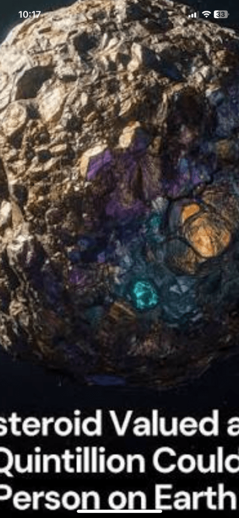 The asteroid is estimated to hold metals, primarily iron and nickel but also including gold and platinum, with a total estimated value of up to $700 quintillion. The figure of “$700 quintillion and 27 quadrillion tons” is based on highly speculative estimates of the mineral wealth.